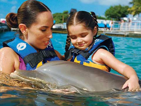 - 15v minutos de interacción con el delfín: abrazo , saludo de mano.