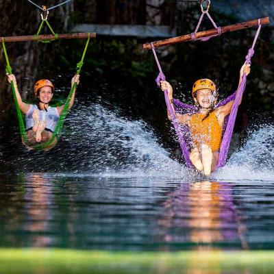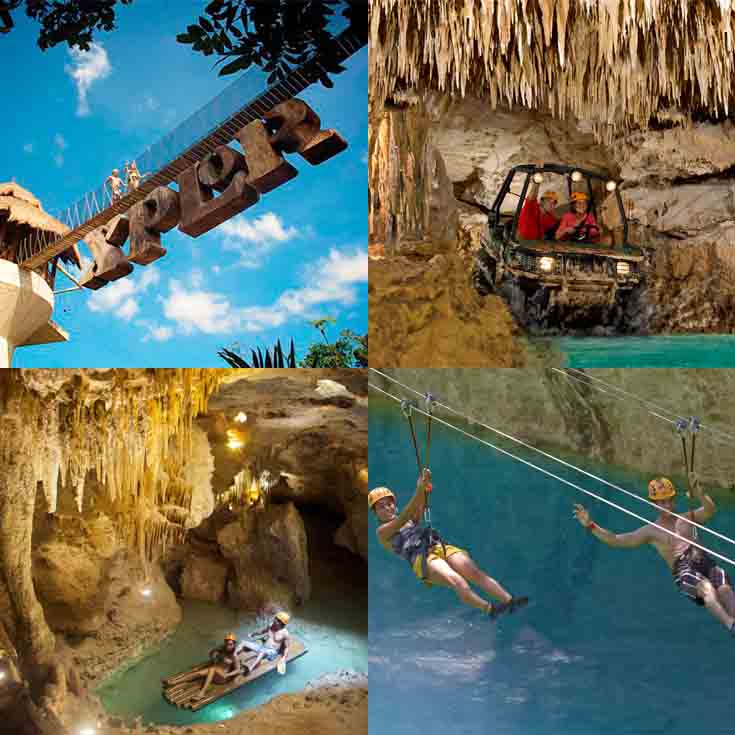 Deslízate por las copas de los árboles en tirolesas tradicionales o, ¿por qué no?, ¡en una hamaca! Adéntrate a las profundidades de la tierra en recorridos subterráneos repletos de estalactitas y estalagmitas, o explora la jungla maya en divertidos vehículos anfibios. Si el hambre troglodita se apodera de ti, tendrás comida ilimitada en el buffet. Definitivamente, este parque en Playa del Carmen es lo que tu espíritu aventurero está buscando.